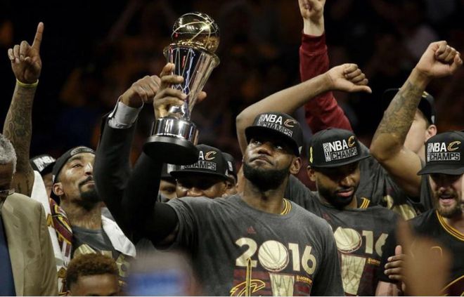 不过2016年NBA总决赛抢七大战,骑士93-89险胜勇士,欧文命中关键三分,詹姆斯随后两罚一中取得4分优势,库里关键三分不中。骑士从1-3落后到4-3翻盘,创造NBA历史首次总决赛1-3落后翻盘夺冠,詹姆斯也是夺得FMVP,率领骑士夺得队史首冠。
