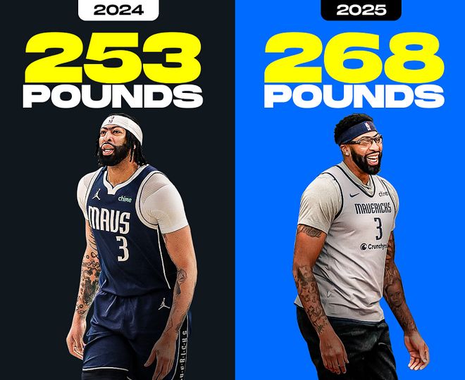 除此之外,浓眉的身体状况也让人深表担忧。浓眉在7月份接受了视网膜修复手术,当他出现在新赛季训练营时,右眼依然明显异常。浓眉在接受采访时坦言:医生说我剩余NBA生涯都要戴眼镜上场比赛,浓眉变四眼,这确实让人难以接受。更关键的是,浓眉肉眼可见身体发福了。按照美媒的说法,浓眉新赛季官方体重为268磅,较上赛季(253磅)相比增加了15磅(约6.8公斤)。浓眉在接受采访时表示:增重是我休赛期的惯例,不然赛季深入后体重下降会显得太单薄。但话说回来,长胖跟增重是完全两个概念,考虑到浓眉的伤病史,浓眉以这样的体型征战新赛季也要小心谨慎!