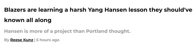 北京时间11月3日,开拓者队记Reese Kunz撰文谈到杨瀚森被下放到发展联盟球队训练一事,他指出,对于开拓者而言,培养杨瀚森的任务比预想的更加艰巨。以下是Kunz的报道——开拓者队