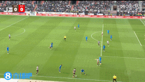 第18分钟,圣保利角球低平球送出禁区,第一点被防守球员解围,随后连续攻门再造一个角球。↓
