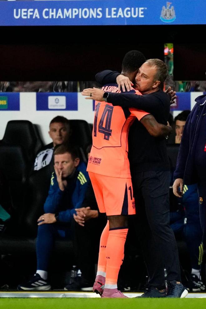 对他来说,这是意义非凡的一刻。但这还不够——更精彩的一幕还在后头。纽卡后卫丹·伯恩传球失误,拉什福德扛住托纳利,为自己创造出射门空间,随后轰出一记惊天世界波。多么精彩的一击!这次,他跑向巴萨主帅汉斯·弗里克庆祝,两人紧紧相拥。他配得上这份拥抱。