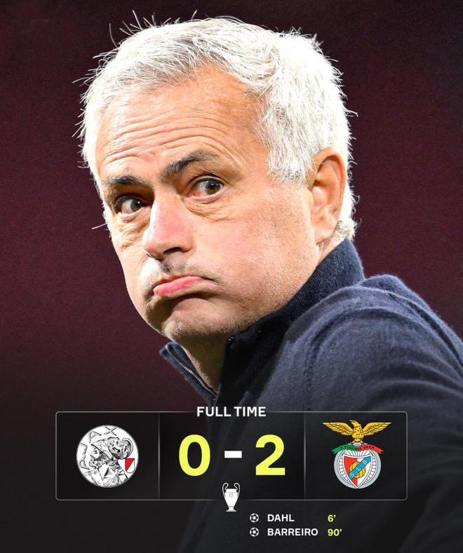 穆里尼奥欧冠首胜!20完胜4冠王,本菲卡终结4连败,附加赛有戏