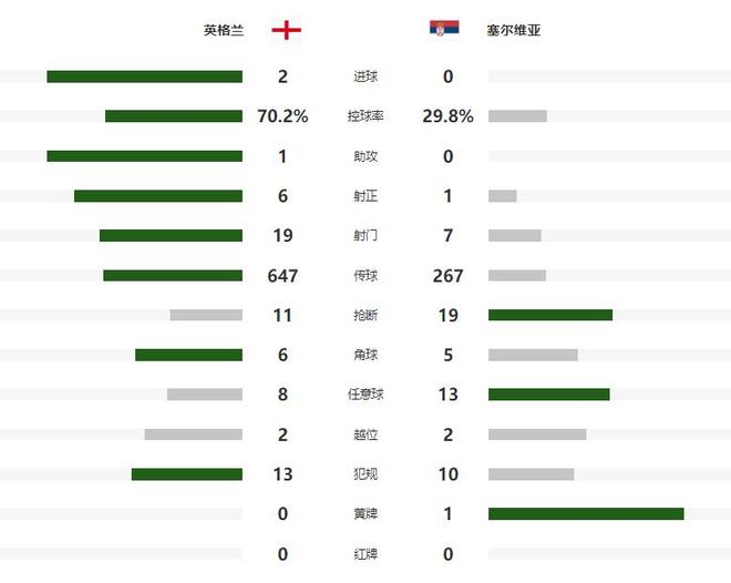 狂攻不止的英格兰,在第28分钟打破场上僵局,前场右侧定位球开出后,虽然被塞尔维亚球员解围,但控制住第二点的英格兰再次将皮球送入对方禁区,萨卡右路垫射帮助英格兰取得了1-0的领先,半场结束前,凯恩和罗杰斯连续完成高质量的头球攻门,但都稍稍偏出,没有能够扩大优势。